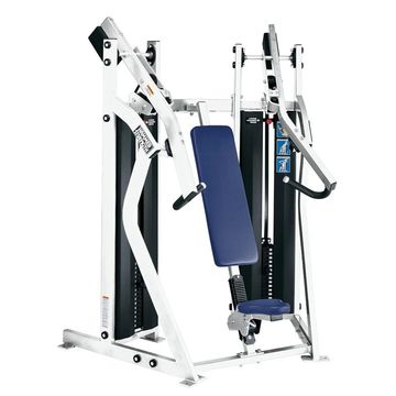 El MTS Iso-Lateral Incline Press se ha personalizado para que se adapte al movimiento del cuerpo humano. Gracias a las columnas de pesas independientes, se pueden realizar movimientos de presión divergentes y convergentes para desarrollar la fuerza muscular de forma compensada y ofrecer una gran variedad de estimulación muscular. El pivote superior proporciona un arco natural de movimiento de los hombros y el respaldo del asiento está en ángulo para facilitar la entrada y salida.