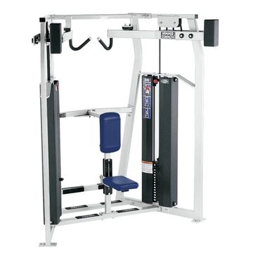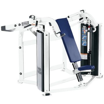 El Iso-Lateral Shoulder Press tiene unos brazos de ejercicio que están contrapesados para reducir la resistencia inicial de los deportistas y las manijas giran hacia afuera para facilitar la entrada y salida.